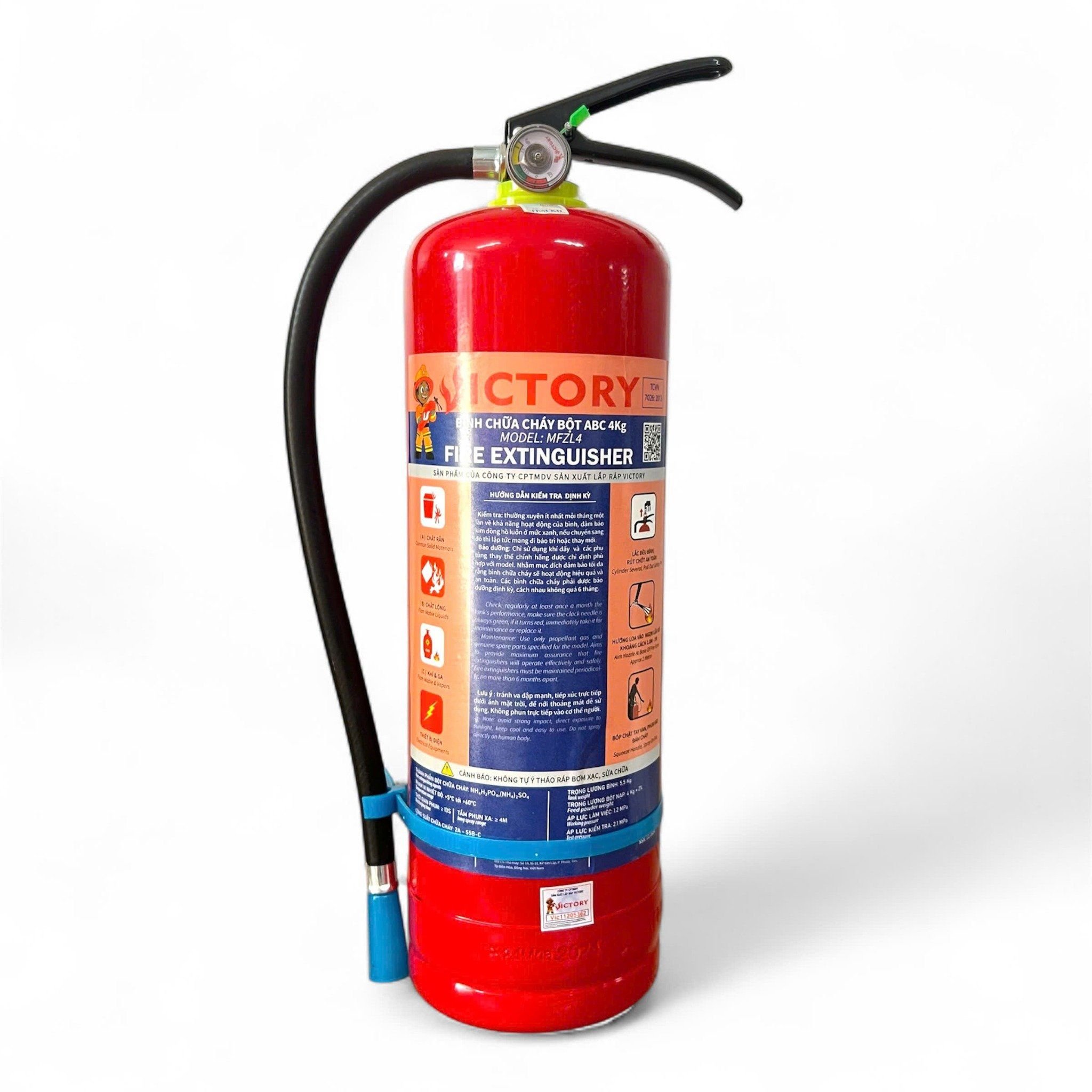 Bình chữa cháy bột abc 4kg (tem PCCC)loại bột 4kg được sử dụng rộng rãi trong các công trình có quy mô vừa phải như nhà ở, văn phòng, xí nghiệp, trạm xăng… Phạm vi chữa cháy 4kg đa dạng bao gồm cả chất lỏng lẫn rắn như: xăng, dầu, khí ga, gỗ, vải, giấy, điện…